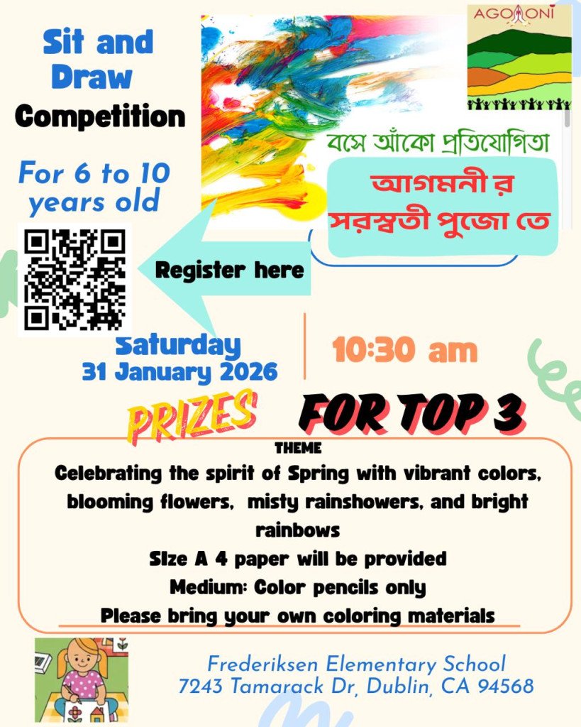 We cordially invite you and your family to Agomoni Saraswati Puja on Saturday, January 31st, 2026.